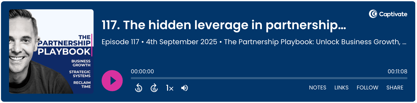 Each Wednesday I’ll send you one actionable tactic to close deals others can’t, earn trust that opens doors and scale your business with confidence. You’ll get the 100 Partnership Tactics Playbook instantly when you subscribe.