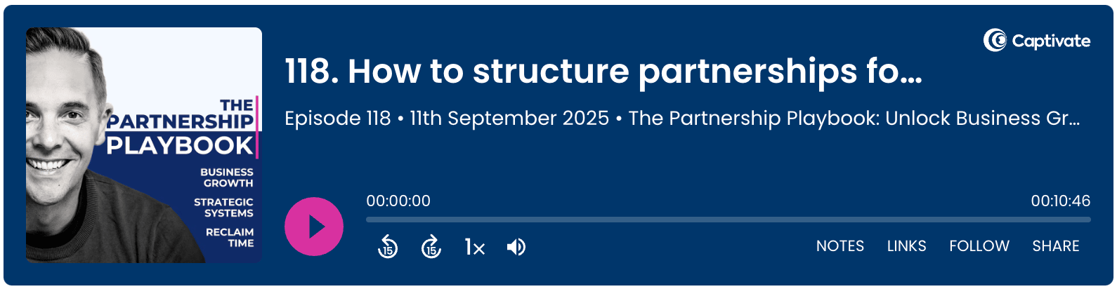 Get every episode of the Partnership Playbook on your next commute or workout. Subscribe to the show on Apple Podcasts, Spotify and Youtube! KNOW PEOPLE WHO FEEL STUCK? Share this issue via text, social media, or email by copying and pasting this link: https://philhsc.com/partnership/1-october-2025 See you next Wednesday, Phil Hayes-St Clair, Business Partnerships Expert & Coach Find me on LinkedIn or Book a 1:1 Call |