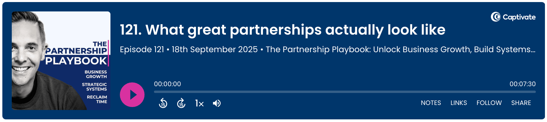 Each Wednesday I’ll send you one actionable tactic to close deals others can’t, earn trust that opens doors and scale your business with confidence. You’ll get the 100 Partnership Tactics Playbook instantly when you subscribe.